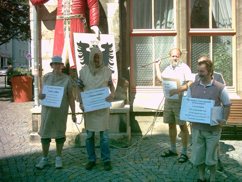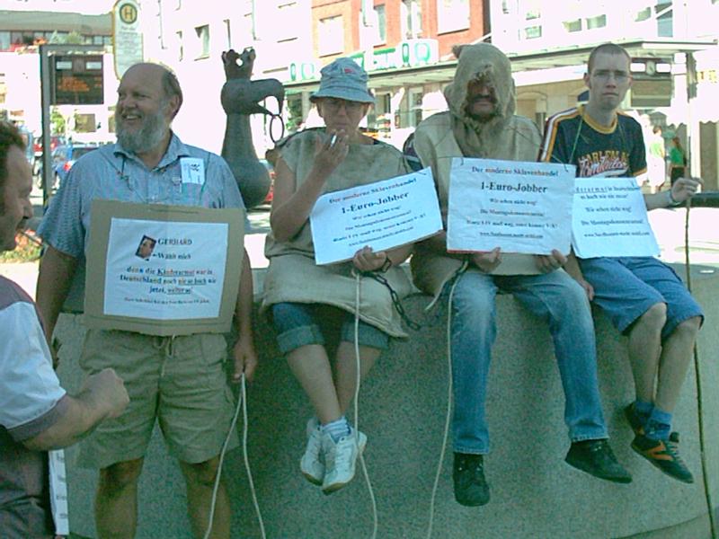 Von den Initiatoren und Mittätern von Hartz IV wurden die 1-€-Jobber in den Straßen von den Bürgern der Stadt mit großen Augen und vielen Fragen verfolgt.
