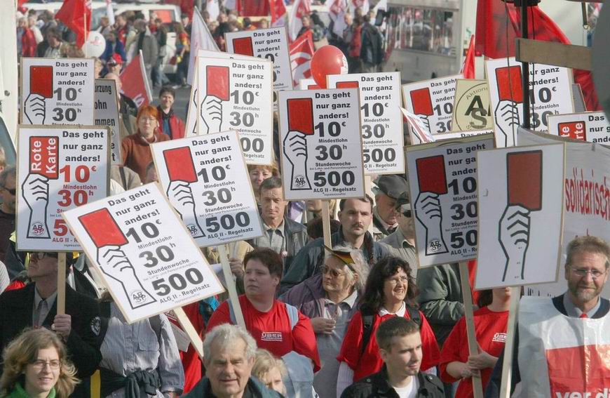"10 Euro gesetzlicher Mindestlohn, 30 Stundenwoche bei Lohn- und Personalausgleich, 500 Euro ALG II-Regelsatz repressionsfrei"