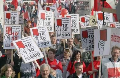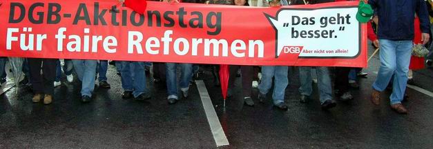 Da können wir nur sagen: Schluss mit den Reformen gegen uns! Das hat auch die Hauspostille des Kapitals verstanden. Das HANDELSBLATT schreibt zur DGB-Demo: "Das Ergebnis kommt einer Quadratur des Kreises nahe: Man hat ein Instrument genutzt, das den Bedürfnissen der Fundamentalopposition entspricht. Gleichzeitig hat man aber mit hinreichend vage vorgetragener 'Sachkritik' etwa an der Rente mit 67 eine allzu direkte Drohgebärde gegen die Regierung vermieden."