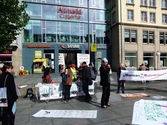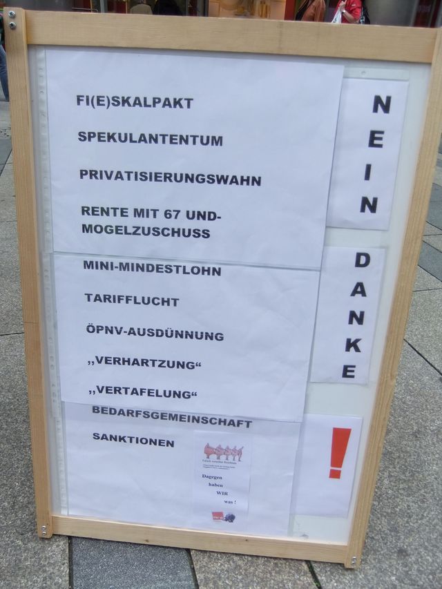 Am 29.9., gemeinsam mit ATTAC Dresden (Aktionstag "Umfairteilen"), und am 04. Oktober, waren die KollegInnen vom Bezirkserwerbslosenausschuss Dresden-Oberelbe aktiv.