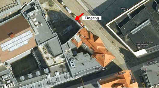 Anreisebeschreibung eine Google-Maps-Satelliten-Ansicht des Tagungsortes von oben